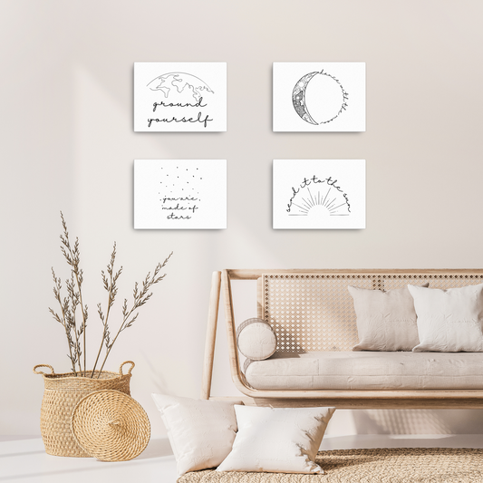 Minimalist Black and White Print, You are Made of Stars, 8x10", Stretched Canvas, Ready to Hang