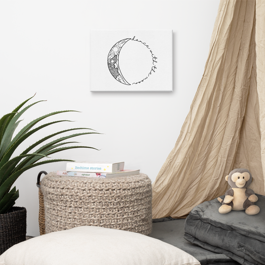 Minimalist Black and White Print, Dance with the Moon, 8X10" Stretched Canvas, Ready to Hang